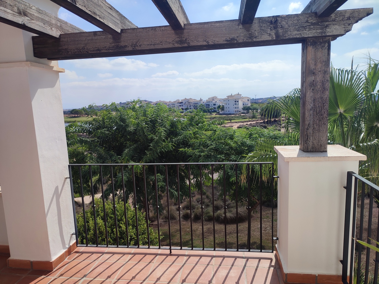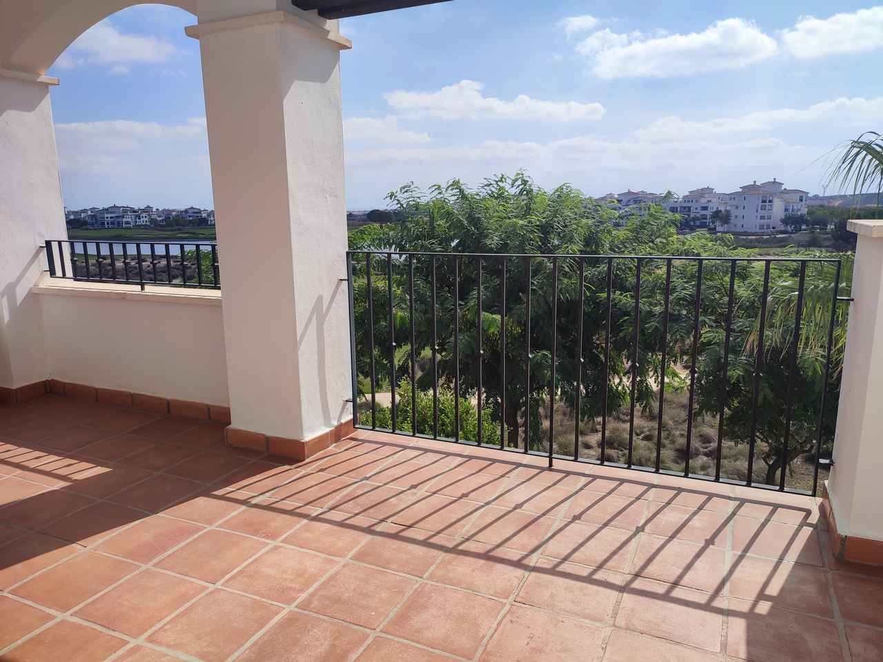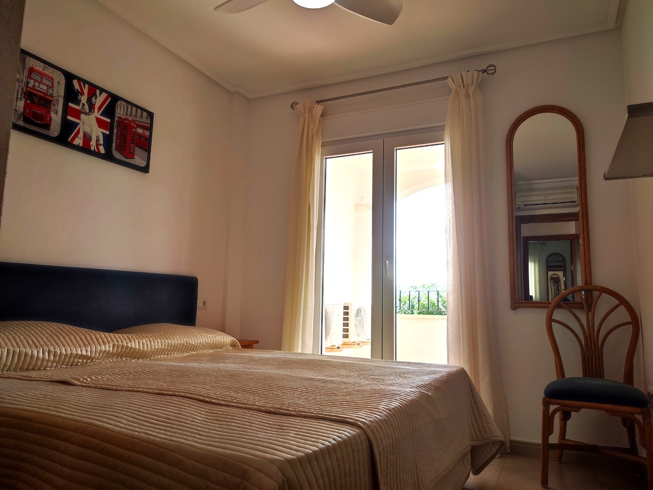 This south facing apartment has a sunny terrace with views over the garden, lakes and swimming pool. Situated on the second for views extend to the sea. The property has unlimited internet, air-conditioning and ceiling fans for summer and central heating for winter, private underground parking space and a communal lift.The apartment is being sold furnished minus personal possessions.It would make an excellent holiday home or suitable for permanent living.The first thing that impresses you about Hacienda Riquelme Golf Resort is the wide-open spaces, the extensive gardens and the low-density construction, which create a relaxing environment to enjoy a very safe and peaceful life or holiday. The apartments are set out spaciously around the magnificent and challenging 18 hole golf course part of the Jack Nicklaus Golf Trail.In the heart of the resort you will find the beautiful renovated Hacienda where you will find a supermarket, clubhouse, restaurant and bar. The inner court yard becomes the hive of entertainment in the Summer, whilst the large terrace set in the stunning gardens is open all year for “al fesco” dining and drinking.Facilities:Gated Community.24 hour security.“El Cason” Bar, Restaurant, Clubhouse. “Sips” Coffee ShopSupermarket.Summer Entertainment.19 large community swimming pools.Communal gardens.Trees, 5 lakes.Wild flowers & local wildlife.Driving range & Golf ShopTennis courts.Paddle tennis courts.Football / Basketball court.Outside gym area.Children’s play areas.Hacienda Riquelme is very well connected by the main motorways. Murcia Airport (20 mins)Mar Menor beaches (15 mins)Mediterranean beaches (20 mins)For those who like historical buildings, architecture or a desire to shop, the lovely cities of Murcia and Cartagena provide plenty of entertainment. Murcia (30 mins)Cartagena (45 mins) Murcia Airport (20 mins)Near to the bustling popular village of Sucina with shops, restaurants, bars, chemist, supermarket and lots more (5 minutes)For more information on the apartments available please contact us.